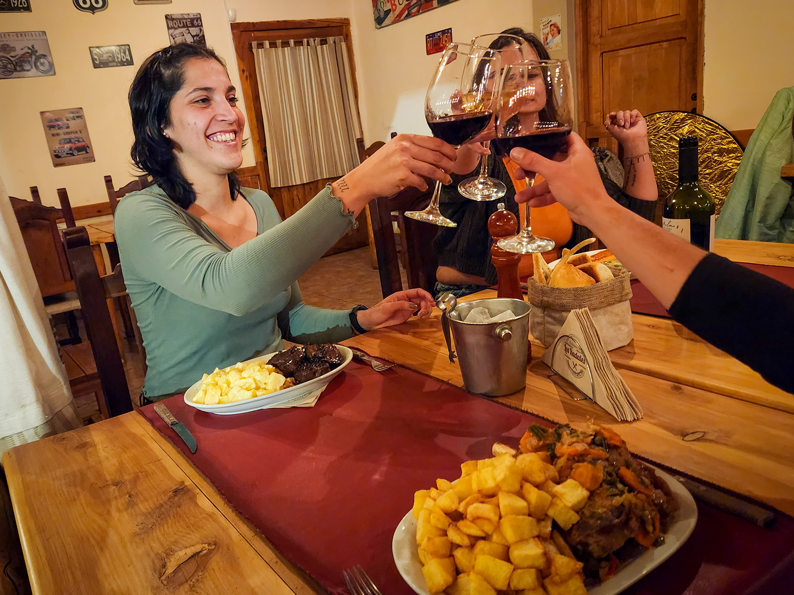 También hay pastas Caseras, tanto clásicas como rellenas de carnes regionales (Sorrentinos de Ciervo, de Cordero y de Trucha). Son muy pedidas tambien por los clientes habituales las milanesas, muy caseras y super abundantes.Hay opciones de platos sin tac, vegetarianos y veganos.